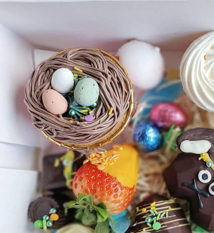 Per 2 stuks chocolade cupcakes met – in thema – paas versiering.